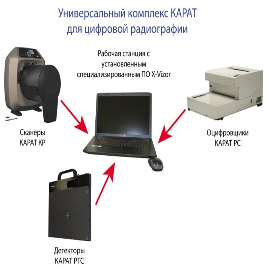 Рабочая станция КАРАТ КР поддерживает различные типы детекторов, включая плоскопанельные модули из собственной линейки. Такая совместимость обеспечивает гибкость при применении технологии, востребованной в процессах, связанных с радиографическим контролем изделий на производственных площадках.