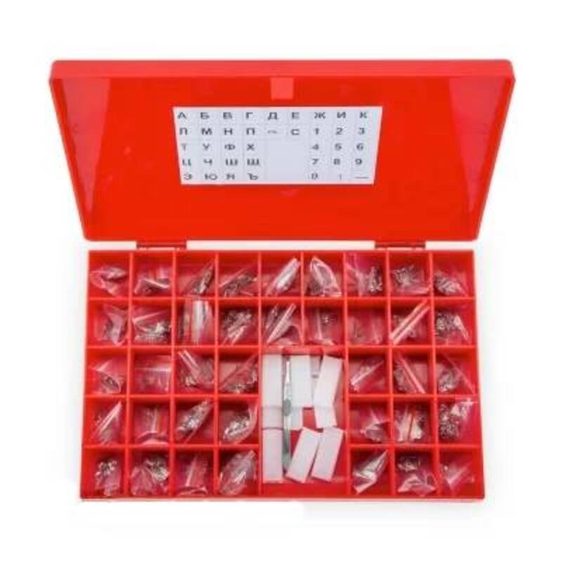 ●  Комплектация: Набор включает 10 копий каждой буквы (кириллица/латиница) и 15 копий цифр, что позволяет формировать сложные многосимвольные индексы.