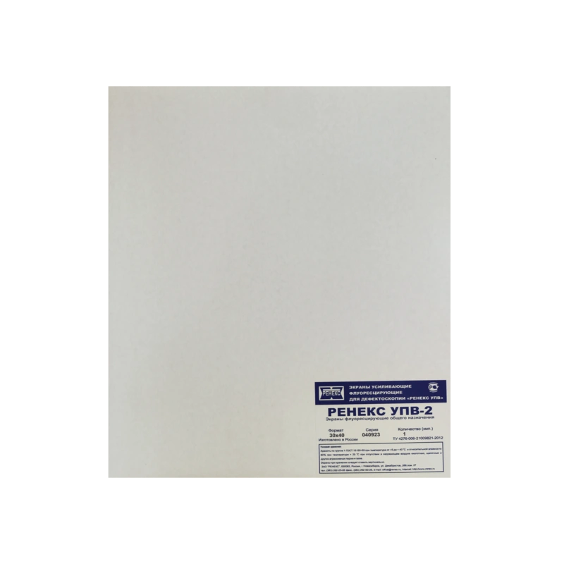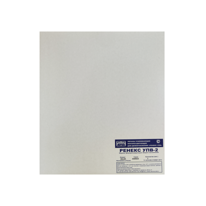 Модель УПВ-2 7,5х40 представляет собой пару идентичных гибких подложек из пластика, на которые нанесен активный слой люминофора — вольфрамата кальция. Для долговечности рабочая поверхность защищена специальным полиуретановым покрытием, а матовая зернистая структура слоя обеспечивает стабильное взаимодействие с фотоматериалом.