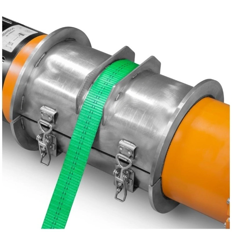 Сначала хомут размещается на корпусе оборудования и фиксируется регулируемыми защёлками — это позволяет точно адаптировать его под модель ERESCO 65 MF4. Затем устройство устанавливается на объект и надёжно закрепляется ременной стяжкой. Храповой механизм обеспечивает плавное натяжение без рывков и гарантирует устойчивость фиксированного положения.
