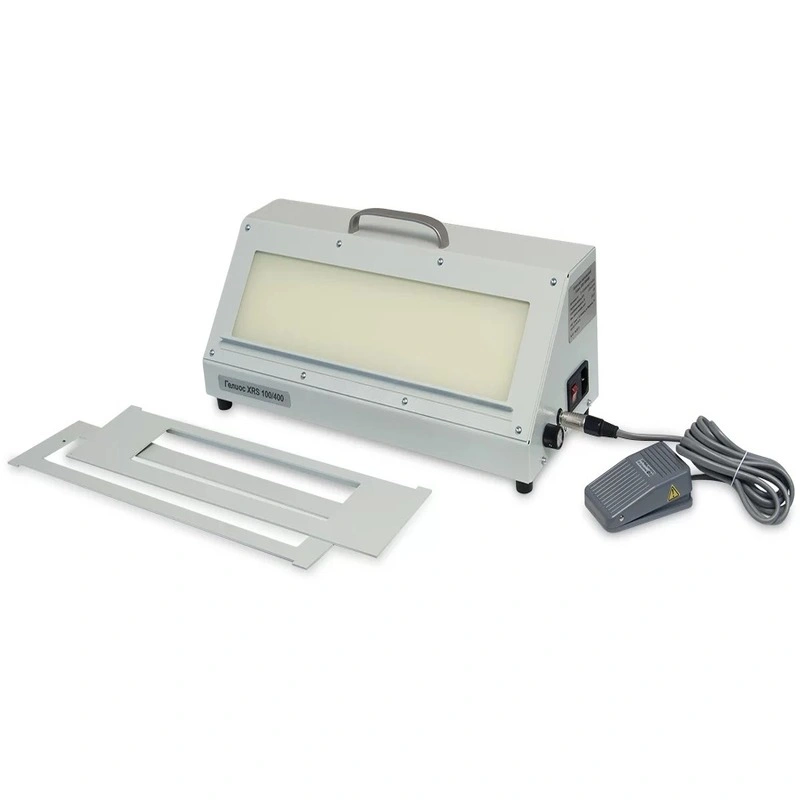 Прибор Гелиос XRS 100/400 отличается продуманным промышленным дизайном. Для управления предусмотрена комбинированная многофункциональная ручка (энкодер), которая отвечает за переключение между дежурным режимом ожидания и активным просмотром. Если ваши руки заняты, вы можете использовать входящую в комплект ножную педаль.