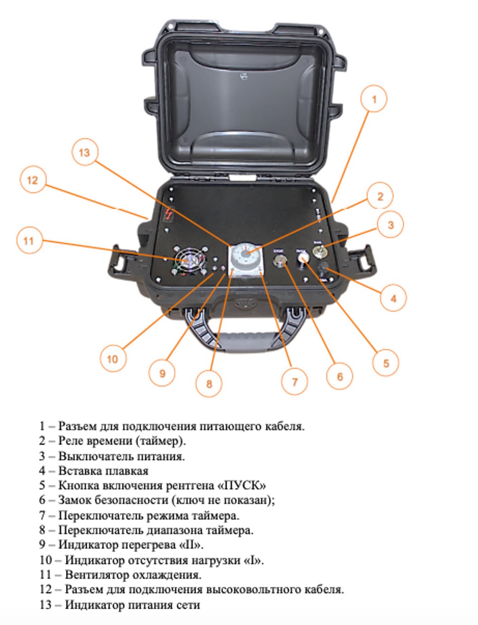 Прибор состоит из рентгеновского блока (РБ) и переносного пульта управления (ПУ), соединенных между собой экранированным электрическим кабелем 25 м длиной.