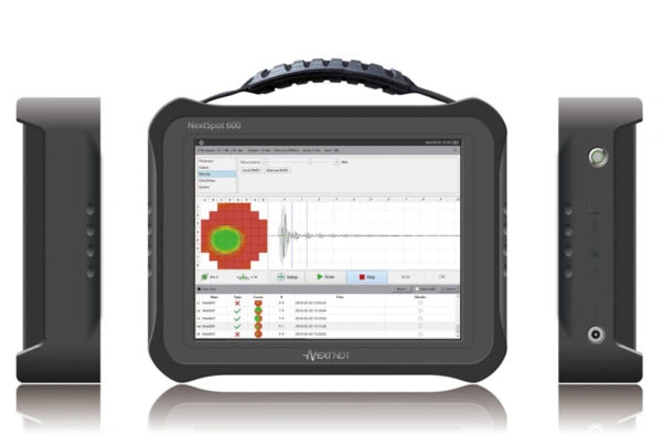 УЗК прибор работает от одной умной литий-ионной батареи с высокой емкостью, благодаря конструкции без вентилятора полностью заряженное устройство может работать в обычном режиме 12 часов, а для полной перезарядки ему требуется всего 3 часа. За счет параллельной 64-канальной конструкции, аналоговой полосы пропускания 1–25 МГц и 12-битного цифрового сигнального процессора NextSPOT 600 обеспечивается проведение максимально точных измерений сварных соединений и вмятин. Кроме того, все результаты визуализируются, что позволяет наглядно оценить результаты полученных измерений.