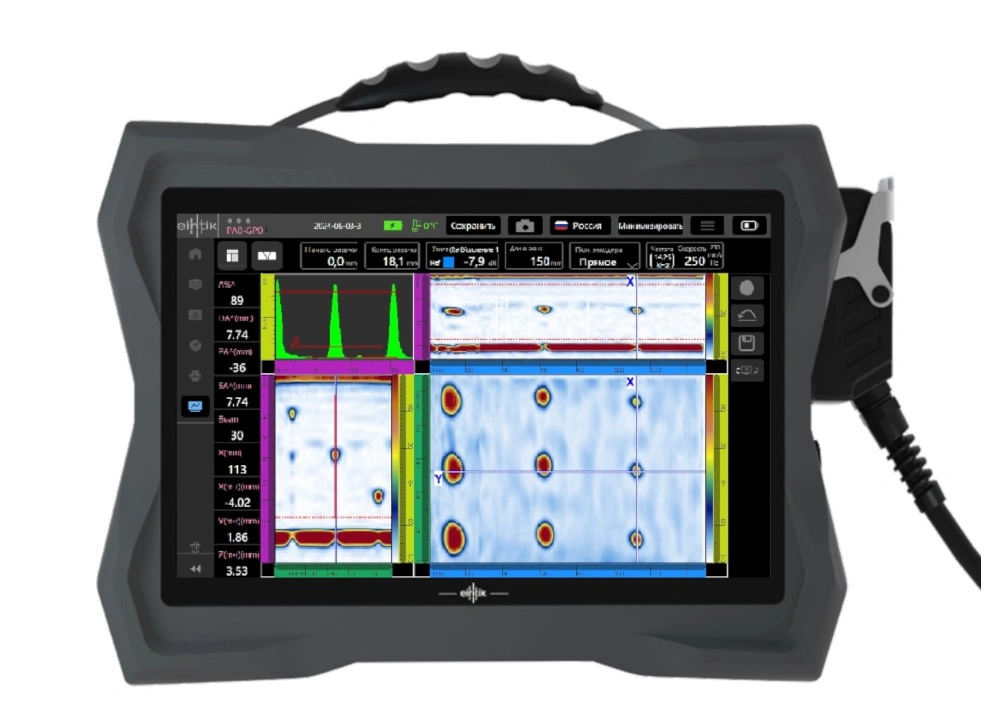 Встроенная функция самодиагностики УЗК прибора позволяет контролировать состояние прибора и ПЭП в режиме реального времени. Возможность дистанционного управления ультразвуковым дефектоскопом с помощью беспроводного пульта облегчает работу с устройством в полевых условиях.