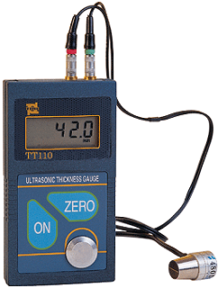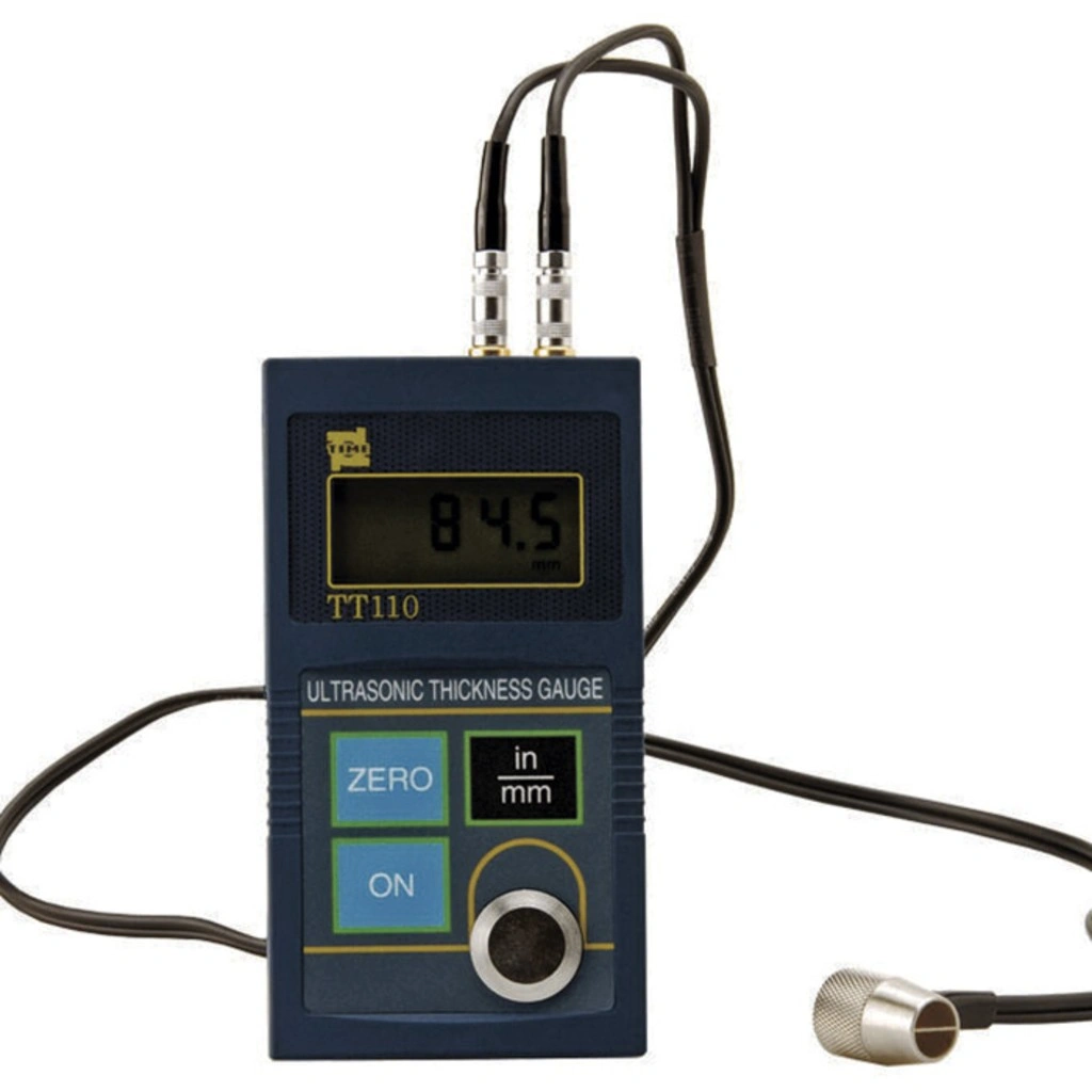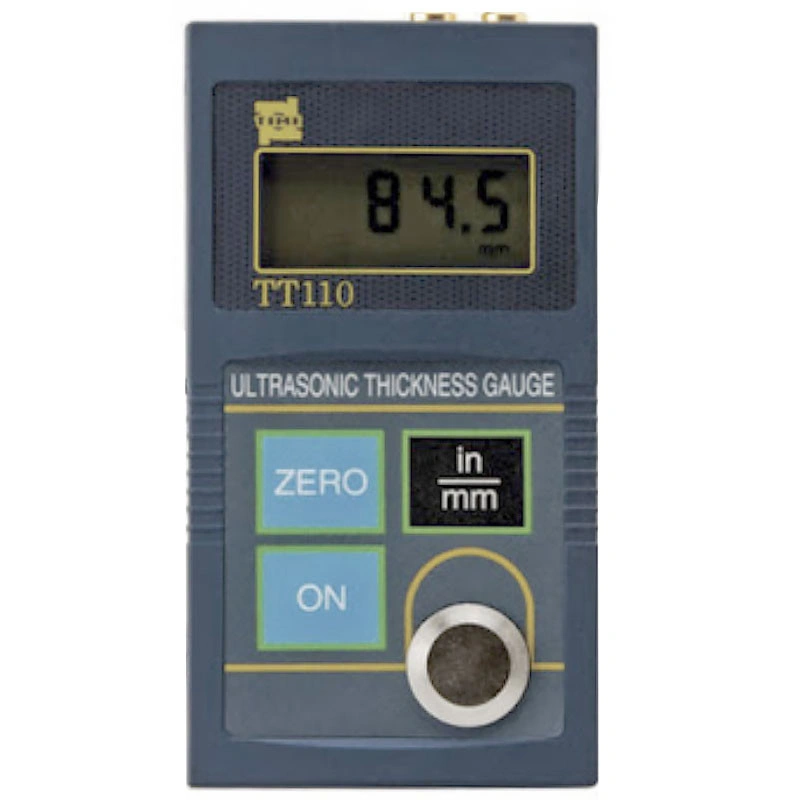 Интерфейс ультразвукового толщиномера TT 110 интуитивно понятен, прибор прост в использовании, точен и надежен. Полученные в ходе проведения анализа значения могут отражаться в миллиметрах или дюймах. В комплект поставки входит ПЭП диаметром контактной поверхности не более 13 мм, работающий на частоте 5 МГц.