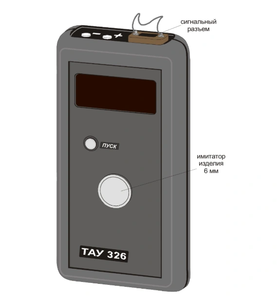 Ручной ультразвуковой толщиномер ТАУ 326 включает в себя портативный измерительный электронный блок с экраном, кнопкой пуск и юстировочным образцом (6мм) на передней панели, к устройству подключается выносной датчик (пьезопреобразователи с рабочей частотой 2.5 и 5 МГц). В верхней части прибора расположены сигнальный разъем и кнопки регулировки сигнала.