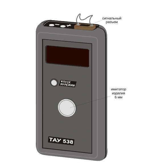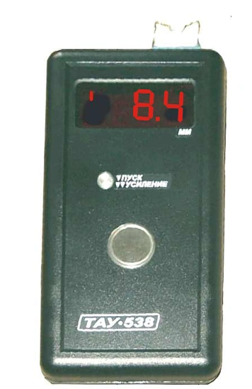 Ручной ультразвуковой толщиномер ТАУ 538 включает в себя портативный измерительный электронный блок с экраном, кнопкой пуск и юстировочным образцом (6мм) на передней панели, к устройству подключается выносной датчик (пьезопреобразователи с рабочей частотой 2.5 и 5 МГц). В верхней части прибора расположены сигнальный разъем и кнопки регулировки сигнала.